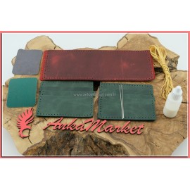 Deri Yatay Cüzdan Kendin Yap Bordo-Yeşil M06