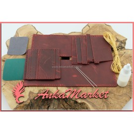 Deri Yatay Cüzdan Kendin Yap Bordo M07