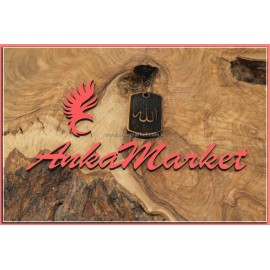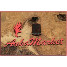Allah (0140) kolye ucu veya anahtarlık olarak kullanılabilir. Koyu Santos Ağacından (Kızıl Pelesenke benzer sertlikte ve desenlere sahiptir) üretilmiştir. Egzotik ağaç sınıfına girdiği için ve doğal bir ağaç olduğundan dolayı yapay ağaçlar veya mdf türevi ürünler ile karşılaştırılması mantıklı değildir. Bu ağacın öz kütlesi sudan fazla olduğu..
