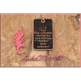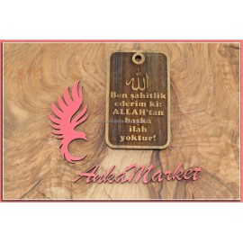 Ben şahitlik ederim ki: Allah'tan başka ilah yoktur yazılı (Kelime-i Şehadet) (0212) kolye ucu veya anahtarlık olarak kullanılabilir. Gül Ağacından üretilmiştir. Kokulu Ağaçtır. Egzotik ağaç sınıfına girdiği için ve doğal bir ağaç olduğundan dolayı yapay ağaçlar veya mdf türevi ürünler ile karşılaştırılması mantıklı değildir. Ürün Öç..