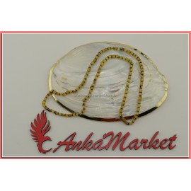 3,5mm-8mm Sedef taşlarından (Aralarında Renklendirilmiş Hematit Taşı) oluşan Sedef Taşı Kolyemiz ipe dizilmiştir. Zamak malzemeden açma Kapama klipsi bulunmaktadır. Her iki uçta düğüm gizleme aparatı bulunmaktadır. 23.5cm Kapalı haldeki ölçüsü- Alpaga malzeme kilit zincir ile birlikte açık halde toplam uzunluğu 48cm. Önemli Uyarı: Su, kol..