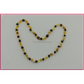 Ortalama 5mm-6mm Orjinal Kehribarlardan (Aralarında sarı boncuklardan) oluşan Kehribar Kolyemiz ipe dizilmiştir. Plasitk malzemeden vidalı açma kapama klipsi bulunmaktadır. Açık halde 59cm (kapalı 29,5cm) toplam uzunluğudur ve 10 gramdır. Ürüne özel ücretsiz kargo. Önemli Uyarı: Su, kolonya, dezenfektan veya kimyasal sıvılar ip veya lastikli..