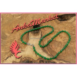 6mm Yeşil Akik taşlarından (Aralarında Renklendirilmiş Hematit Taşı) oluşan Yeşil Akik Kolyemiz ipe dizilmiştir. Zamak malzemeden açma Kapama klipsi bulunmaktadır. Her iki uçta düğüm gizleme aparatı bulunmaktadır. 57cm toplam uzunluğu. Önemli Uyarı: Su, kolonya, dezenfektan veya kimyasal sıvılar ip veya lastikli misinayı zaman içinde y..